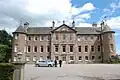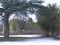 частная собственность | Оригинальный замок был построен в прибл. 1432 году; сгорел в 1640 году. Руины включены в новое здание, сохранившееся до сих пор[2]. Особняк и конюшни охраняются государством[3][4]. Частная резиденция. Рисунок 1897 года. |