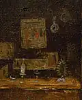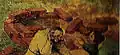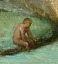 | 21 |  | Перемешивание экскрементов / грязи[7] | Ванден Бранден замечает, что присутствие неподалёку стула с отверстием (см. пункт 16) не оставляет сомнений относительно того, что именно размешивает девочка[12]. Что, впрочем, не мешает ей с аппетитом есть яблоко. |