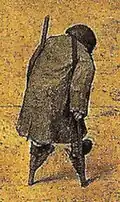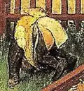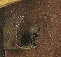 | 07 | .jpg) | Ношение масок | Красная шляпа мальчика, скрывающего лицо за карнавальной маской, упала на навес[5]. |