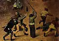 | 75 |  | Борьба | Вероятно, женщина, выливающая ведро воды на дерущихся мальчиков, — одна из немногих взрослых, присутствующих на картине[17][8]. |