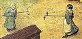 | 44 | .jpg) | Шуточная свадьба[7] | См. также пункты 14 и 15. Хиндман отмечает, что эпизоды сватовства, свадьбы и крещения (то есть рождения ребёнка) объединены как композицией, так и цветовой гаммой[2]. |