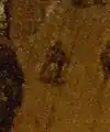 | 04 |  | Имитация алтаря / церковной мессы | На этом фрагменте картины присутствуют предметы, используемые в ходе литургии: подсвечники, изображения святых, распятие[3]. Не исключено, что кукла в чёрной одежде (см. выше) должна изображать священника. |