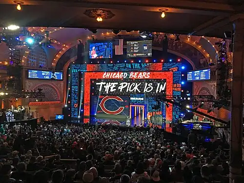 Драфт НФЛ является одним из самых заметных событий в спортивной жизни США. В 2017 году на мероприятие в Филадельфию приехало около 250 тысяч болельщиков и 1 800 представителей СМИ. По сообщению журнала Forbes положительный экономический эффект от события составил примерно 95 млн долларов. Драфт 2018 года стал первым в истории, когда все семь раундов транслировались в прямом эфире. Вещание осуществляли ESPN, Fox и ABC. Церемония прошла в Арлингтоне на домашней арене клуба «Даллас Ковбойз». Под первым номером был выбран квотербек Бейкер Мэйфилд[11][12].