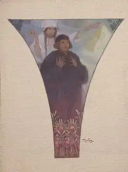 | [[]] чеш. Bojovnost — Jan Žižka — studie pendentivu v Primátorském sále Obecního domu v Praze |