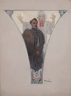 - ↑ Pavilon Bosny a Hercegoviny – fragment horního vlysu s postavami z bosenských legend – Ivem a Anicou (чеш.). muchafoundation.org. Дата обращения: 5 ноября 2021. Архивировано 5 ноября 2021 года.