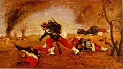 - ↑ Dora Vallier nennt «eine wenig überzeugende» Hypothese von de Forges, wonach Rousseau bei diesem Bild Claude Monet als Vorbild genommen habe. Sie hält dies für wenig glaubhaft, das Rousseaus Vorbild Gérome war, der den Impressionismus ablehnte. Siehe Dora Vallier: Das Gesamtwerk von Rousseau, S. 121.