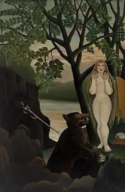 - 1 2 Die Angebliche Urheberschaft bezieht sich auf einen Zeitungsartikel aus dem Jahr 1908. Rousseau selbst hat dies als Irrtum bezeichnet. Das Bild stammt stattdessen von Bolesław Biegas. Siehe Dora Vallier: Das Gesamtwerk von Rousseau, S. 121.