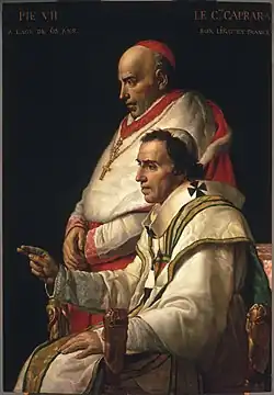 | Папа Пий VII и кардинал Капрара фр. Portrait du pape Pie VII de profil, assis, bénisant, avec le cardinal Caprara |