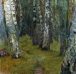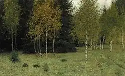 ![]() | Берёзовая роща | 1885–1889 | Бумага на холсте, масло | 28,5 x 50 | Государственная Третьяковская галерея |