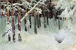 ![]() | Лес зимой | 1880-е | Картон, масло | 20 x 29,5 | Севастопольский художественный музей им. П. М. Крошицкого |