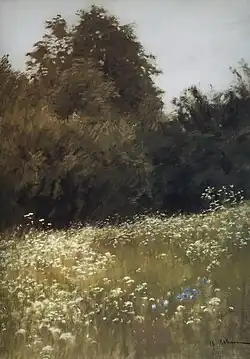 ![]() | Летний вечер | 1900 | Картон, масло | 49 x 73 | Государственная Третьяковская галерея |