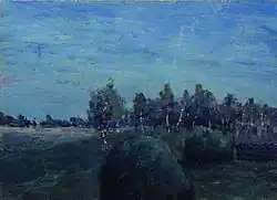 ![]() | Сумерки. Стога | 1899 | Картон, масло | 59,8 x 74,6 | Государственная Третьяковская галерея |