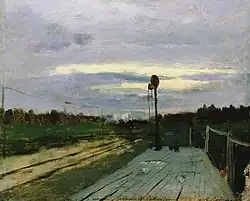 ![]() | Полустанок | 1880-е | Холст на картоне, масло | 21 x 25 | Плёсский государственный историко-архитектурный и художественный музей-заповедник (Дом-музей Левитана) |