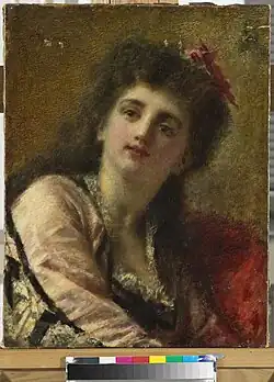 Авторская реплика одноименного живописного портрета 1882 г. для издания «25 лет русского искусства. Иллюстрированный каталог Художественного отдела Всероссийской выставки в Москве, 1882 г.». Пост. в ГТГ из Государственной Цветковской галереи в 1925 г. Инв. №: Инв.7160. | |