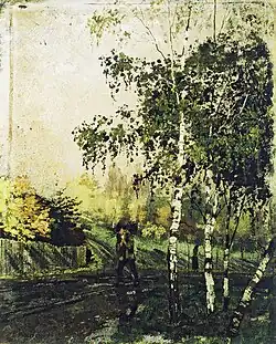 | Берёзы и человек, несущий ветки англ. Birch Trees and Man Carrying Twigs, норв. Bjørketrær og mann som bærer kvists | ![]() | 1882 | ? | 36 x 29 | 71 | местонахождение не установлено | |