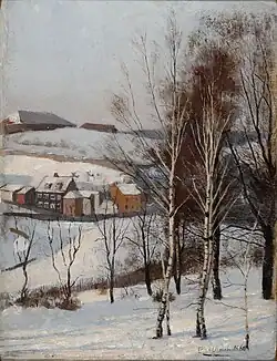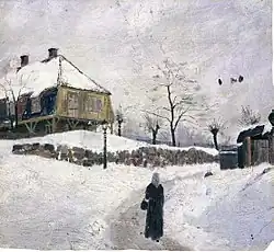 | Зимний пейзаж с домами и красным небом англ. Winter Landscape with House and Red Sky, норв. Vinterlandskap med hus og rød himmel | ![]() | 1881 | картон, масло | 14 x 17,5 | 13 | местонахождение не установлено | |