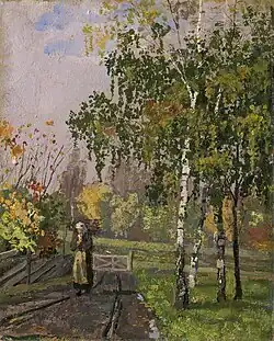 | Берёзы и идущая женщина англ. Birch Trees with Woman Walking, норв. Bjørketrær og gående kvinne | ![]() | 1882 | картон, масло | 29,5 x 22 | 68 | местонахождение не установлено | |