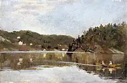 | Мужчина и женщина в лодке англ. Man and Woman in Boat, норв. Mann og kone i båt | ![]() | 1881 | негрунтованный картон, масло | 17,5 x 25,5 | 30 | частная коллекция (Стокгольм, Швеция) | |