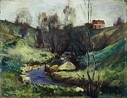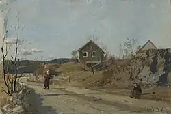 | Пейзаж с маленьким домом и двумя людьми англ. Landscape with a Small House and Two People, норв. Landskap med lite hus og to mennesker | ![]() | 1881 | картон, масло | 17 x 14,5 | 24 | частная коллекция | |