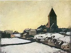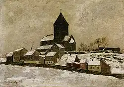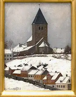 | Старая Акерская церковь англ. Gamle Aker Church, норв. Gamle Aker kirke | ![]() | 1881 | картон, масло | 16 x 21 | 37 | Музей Мунка (Осло, Норвегия) | [23][24] |
