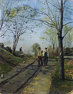 | Два мальчика на просёлочной дороге англ. Two Boys on a Country Lane, норв. To gutter på en vei | ![]() | 1882 | картон, масло | 32 x 25 | 74 | местонахождение не установлено | |