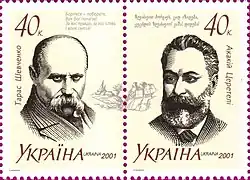 - ↑ Випуск поштових блоків та марок серії «200-річчя від дня народження Тараса Шевченка». (укр.). КМД УДППЗ «Укрпошта». poshta.kiev.ua. Дата обращения: 3 августа 2018. Архивировано 25 марта 2018 года.
