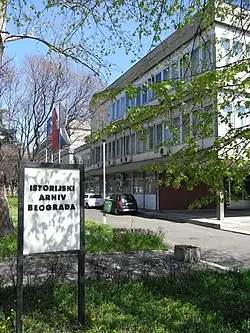 | Архив Югославии | 1950[6] | Улица Васе Пелагича, 33[6] | Архив Югославии, ранее именовавшийся Архивом Сербии и Черногории, размещён в здании задужбины короля Александра I Карагеоргиевича. Оно было построено в 1933 году по проекту архитектора Воина Петровича. Документы архива размещены в 840 фондах и коллекциях, они относятся к периоду Королевства Югославии, СФРЮ и СРЮ[6]. | ![]() |
