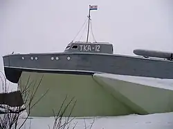 ТК-31 Верхняя Пышма Торпедный катер типа «Г-5» 2019 Полноразмерный макет, сделанный для Музея военной техники УГМК. Оригинальный катер ТК-31 успешно действовал на Чёрном море во время Великой Отечественной войны[10].