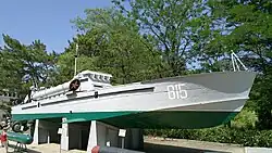МО-215 Ладожское Озеро (посёлок) Катер малый охотник 1941 Построен в Ленинграде, 16 августа 1941 года вступил в строй. Участвовал в Великой Отечественной войне. Участвовал в боевых операциях на Ладожском озере и Финском заливе, прошёл около 5 тысяч миль. Совершил 24 боевых похода. потопил 5 барж и катеров противника. В боях имел повреждения. Является экспонатом музея Дорога жизни.