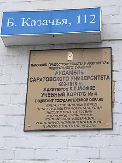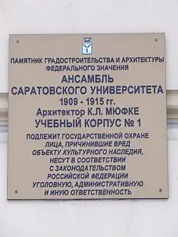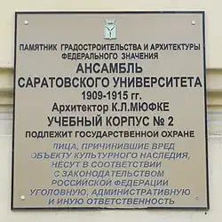 | 1) | Ансамбль Саратовского университета, 1909—1915 гг. | ул. Московская, 155,