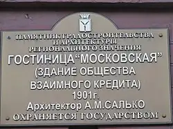 - ↑ Приказ управления по охране объектов культурного наследия Правительства Саратовской области от 06.06.2019 года № 01-04/17 «О включении выявленного объекта культурного наследия по адресу: Саратовская область, г. Саратов, ул. Московская, 7, в единый государственный реестр объектов культурного наследия (памятников истории и культуры) народов Российской Федерации в категории объекта культурного наследия регионального значения, утверждении границ территории и предмета охраны»
