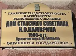 - 1 2 Приказ №01-04/45 «О включении выявленного окн по адресу: Саратовская область, г. Саратов, ул. Чернышевского, 211, в единый государственный реестр объектов культурного наследия…» Дата обращения: 5 февраля 2020. Архивировано 5 февраля 2020 года.