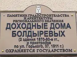 - 1 2 3 Приказ №01-04/46 «О включении выявленного окн по адресу: Саратовская область, г. Саратов, ул. Горького, 21, в единый государственный реестр объектов культурного наследия…» Дата обращения: 5 февраля 2020. Архивировано 5 февраля 2020 года.