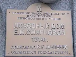 | Дом жилой НКВД, 1937 г., арх. В. П. Дыбов, Д. В. Карпов