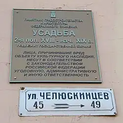 - ↑ Приказ № 01-04/49 «Об уточнении адресного ориентира окн местного (муниципального) значения, расположенного по адресу: Саратов, ул. Б. Казачья, 32/ул. Вольская, 87». Дата обращения: 3 марта 2020. Архивировано 3 марта 2020 года.
