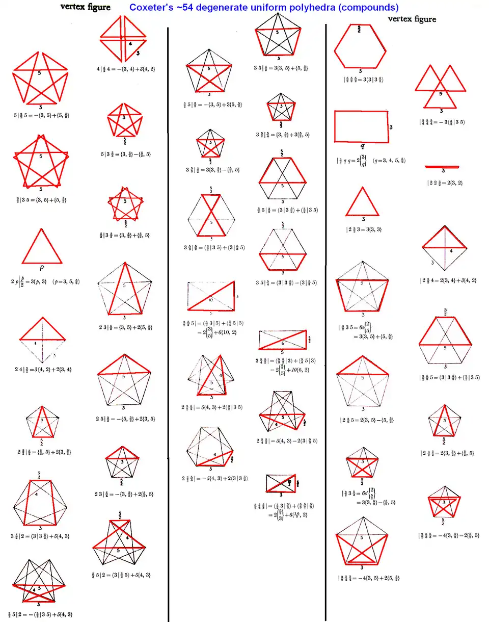 Эти многогранники генерируются построением Витхоффа с лишними гранями. Если фигура генерируется с помощью построения Витхоффа как соединение двух или трёх неидентичных компонент, операция «приведения» удаляет лишние грани (которые следует указать) из фигуры, оставляя только одну компоненту.