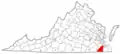 | Питсилвейния | 1767 | Чатем | 61 687 (2016) | 2533 / 2510 | 24,6 | Самый большой округ Виргинии по площади суши. В округе находится крупнейшее в США (7-е в мире) неразработанное месторождение урана. | |