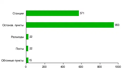 По состоянию на 2012 год на Транссибирской магистрали находится 1852 остановочных пункта, в том числе 1580 — действующие.