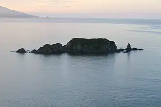 | 82 | Скалы Замок | 0,00145 | 0,19 | 0,035 | 37,1 | 42°48′33″ с. ш. 133°42′46″ в. д. | В подсчёте участвовала крупнейшая северо-западная скала. Административно принадлежат Лазовскому району. Кратчайшее расстояние до материка 0,035 км. | |