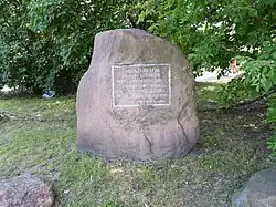 Памятный камень в честь Петра Дернова, заслонившего своим телом амбразуру немецкого бункера пол. Głaz ku czci Piotra Diernowa, który poległ zasłaniając strzelnicę niemieckiego bunkra |