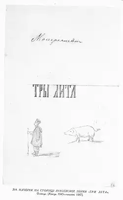 ![]() | Знахарь Иллюстрация к одноимённому произведению Г. Ф. Квитки-Основьяненко | Бумага, карандаш, тушь, перо, кисть | 21,4×15,9 | 10 октября 1841 | [37] |