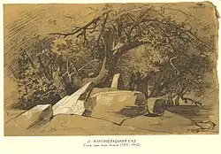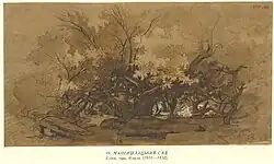 ![]() | Уголок Смоленского кладбища в Петербурге | Карандаш, сепия | 17,8×26,5 | лето 1840 | [29] |