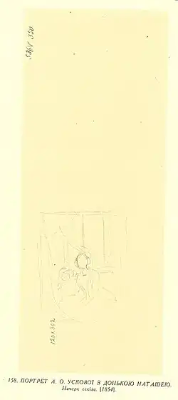 ![]() | Слепая с дочкой Автоиллюстрация к поэме «Слепая» | Бумага, карандаш, сепия | 21,5×17,8 | 1842 | [43] |