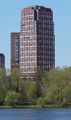 | 8 | ЖК «Чемпион-Парк», 2-я очередь | ![]() | 130 | 37(+2 верх. техн.) | март 2017[34] | Машинная ул., 1Б к.2 | [35][36] | ||