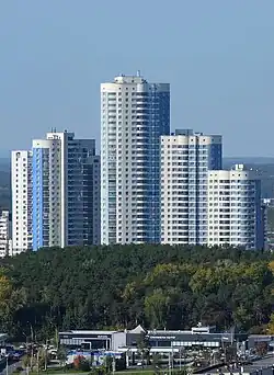 | 18 | ЖК «Ньютон Парк», 3-я очередь | ![]() | 102,9 | 102,9 (отметка кровли) [99,04] | 34 + 1 | 2021 | ул. Краснолесья, д. 10/4 | Самый высокий жилой комплекс в Академическом районе. | [44][45][46][47] |