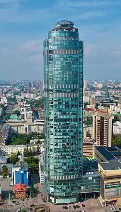 | 2 | БЦ «Высоцкий» | ![]() | 195,45[23][24], м | 194,25[25] | 50[26][прим. 5] | ноябрь 2011 | ул. Малышева, 51 | Самое высокое офисное здание в городе. | [27][28] |