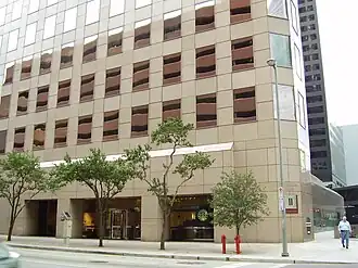 | 19 | Башня JPMorgan Chase | ![]() | Хьюстон 29°45′34″ с. ш. 95°21′48″ з. д. | 305 | 75 | 1982 | Высочайшее здание в Хьюстоне; высочайшее пятистороннее здание в мире[31][32] |