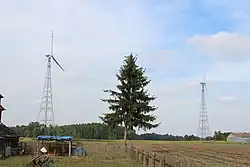 | Ветровая электростанция | 3 ветрогенератора близ Нового-Томысля | окрестности села Папротць | 210 м |