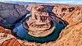 Бо́льшая часть течения проходит по засушливому плато Колорадо, где река прорезала одни из самых впечатляющих каньонов в США. |