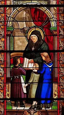- ↑ Генриетта Иисуса, сестра Святого Людовика, Мария Распятия Христова, Шарлотта Воскресения Христова, Евфрасия Непорочного Зачатия Девы Марии, Тереза Непорочного Сердца Марии, Юлия-Луиза Иисуса, Тереза Святого Игнатия, Мария-Генриетта Божественного Провидения, Констанция Святого Дионисия, сестра Святой Марты, Мария Святого Духа, сестра Святого Франциска Ксаверия, Катрин Суарон и Тереза Суарон